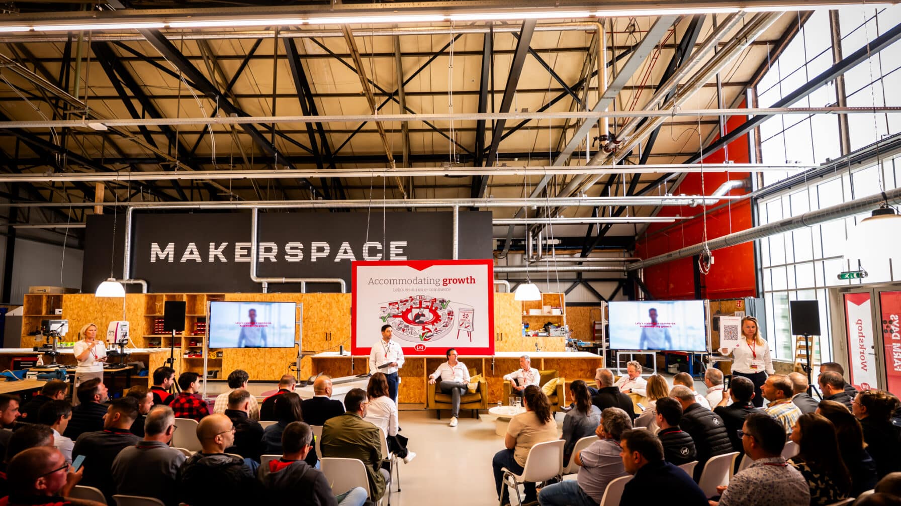 Het event vond letterlijk plaats in het hart van Lely’s werk: de productiehal zelf. Door deze ruimte om te bouwen tot eventlocatie bevonden bezoekers zich midden in de wereld van de nieuwste technieken.